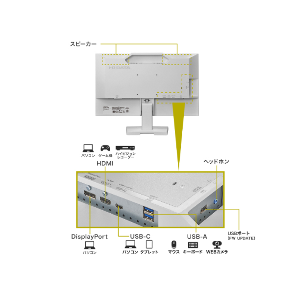 I-O DATA ワイド液晶ディスプレイ 23.8型/1920×1080/HDMI、DisplayPort Type-C/白/スピーカー/100Hz対応/5年保証 LCD-C242SDW-AG