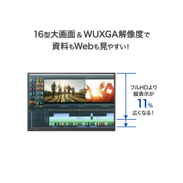 I-O DATA 【法人限定】モバイルディスプレイ16型/1920×1200/HDMI(ミニ)、Type-C(DisplayPort Alt Mode)/BK/スピーカ LCD-YC163DX-AG