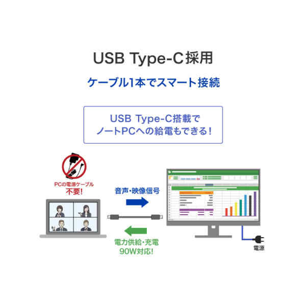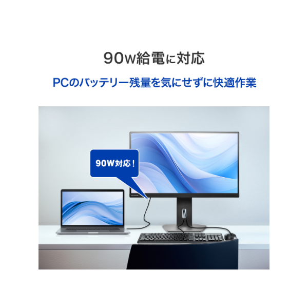 | USB | USB Type-C(HDCP 2.3/USB 5Gbps(USB 3.2 Gen1)、DisplayPort Alt Mode、USB PD(最大90W))×1、USB-A(USB 5Gbps(USB 3.2 Gen1)(最大5V/0.9A))×2、USB-A[USB 1.5A FW UPDATE](給電用 5V/1.5A(USB BC1.2)、メンテナンス用)×1 |