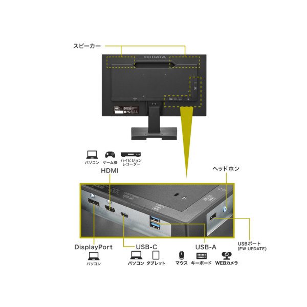 I-O DATA ワイド液晶ディスプレイ 21.5型/1920×1080/HDMI、DisplayPort、Type-C/BK/スピーカー/100Hz対応/5年保証 LCD-C222SDBX