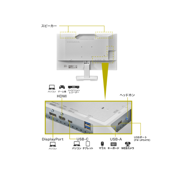 I-O DATA ワイド液晶ディスプレイ 27型/1920×1080/HDMI、DisplayPort、Type-C/ホワイト/スピーカー/「5年保証」 LCD-C272SDW