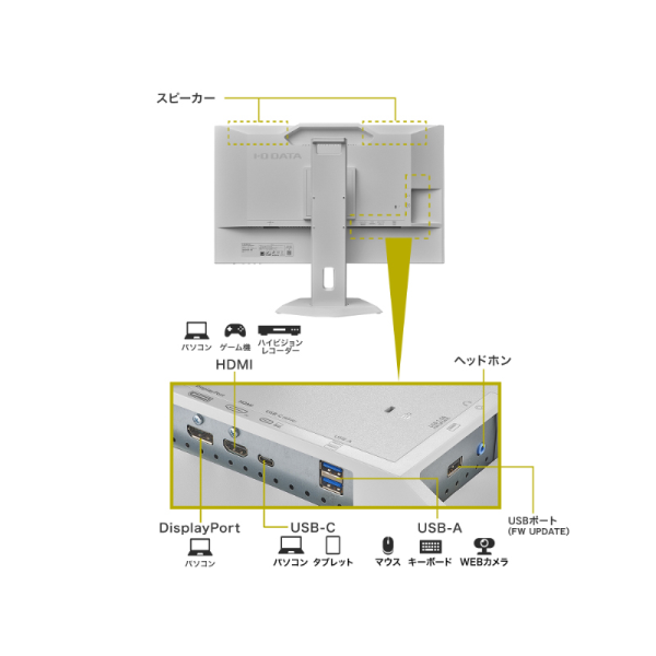 I-O DATA ワイド液晶ディスプレイ 27型/1920×1080/HDMI、DisplayPort Type-C/ホワイト/スピーカー/5年保証/抗菌 LCD-C272SDW-F-AG