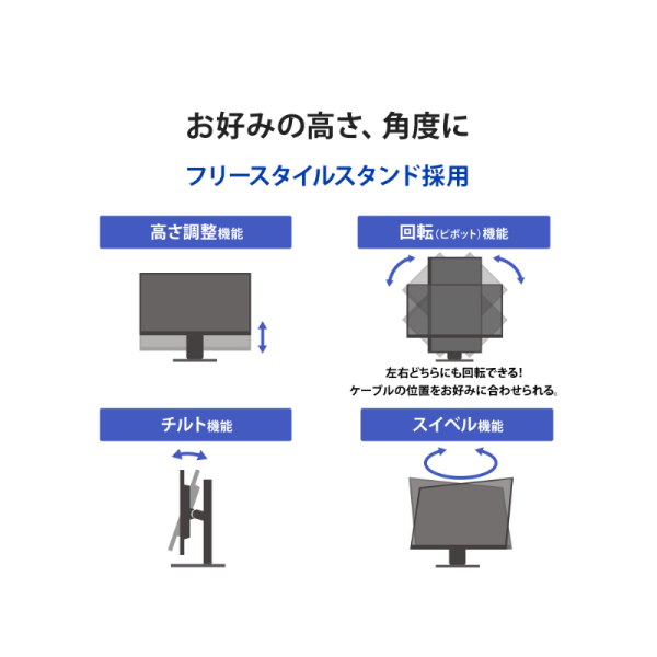 | 縦回転(ピボット)機能 | あり 左:90° 右:90° |