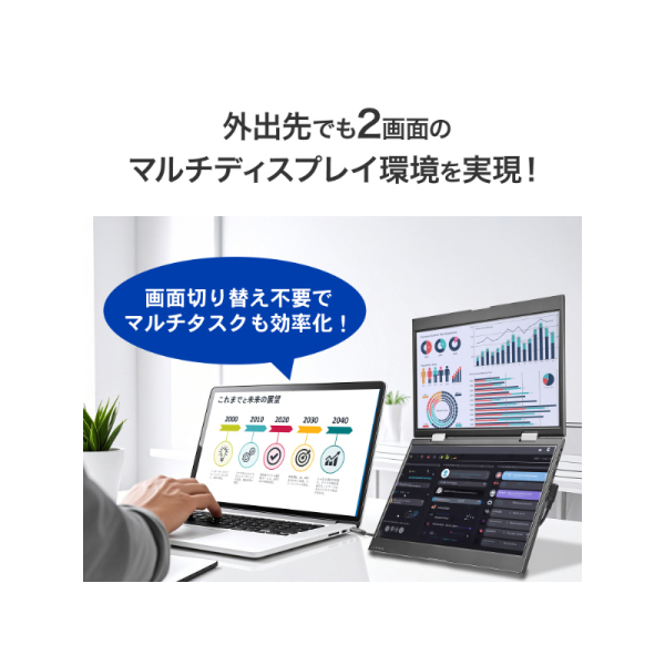 I-O DATA モバイルディスプレイ 14型/1920×1080/HDMI(ミニ)、USB Type-C(DisplayPort Alt Mode)/シルバー/2画面表示 LCD-YC1412DX