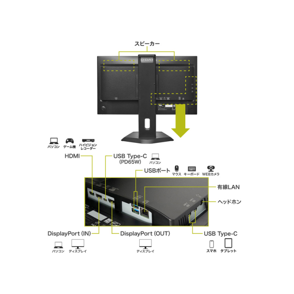 I-O DATA ワイド液晶ディスプレイ 23.8型/1920×1080/HDMI、DisplayPort、USB-C、RJ-45/BK/スピーカー LCD-C243SMB-F